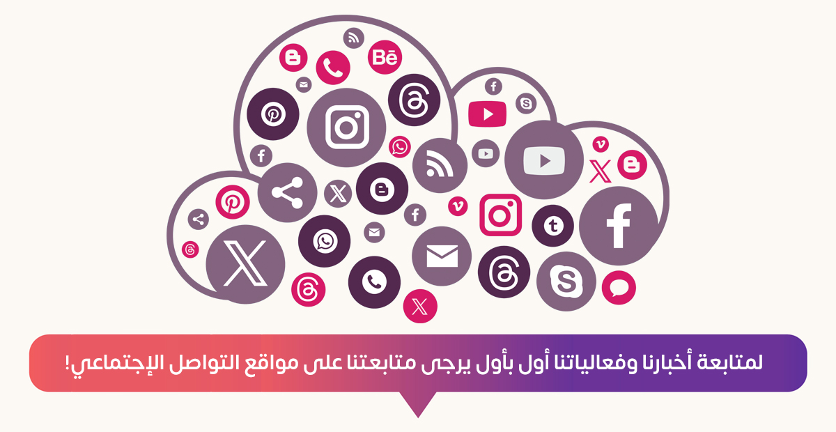 حرصًا منا على إبقائكم على اطلاع دائم بكل جديد من أخبارنا وإعلاناتنا وفعالياتنا، ندعوكم لمتابعتنا عبر حساباتنا الرسمية على منصات التواصل الاجتماعي، حيث ننشر أحدث المستجدات والمعلومات بشكل...